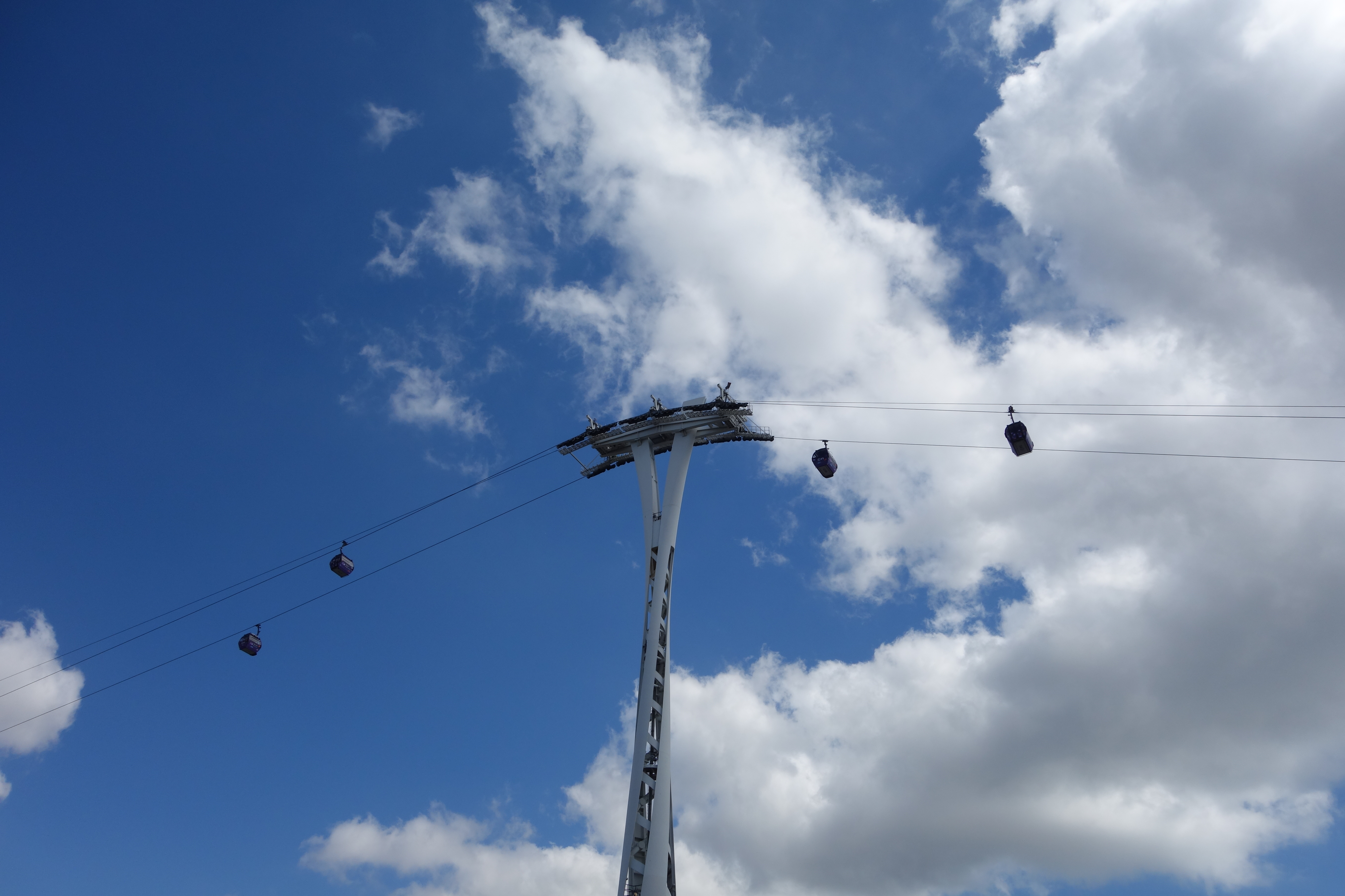 The rapidly developing North Greenwich peninsula is capped by the O2 Entertainment Complex and the recently renamed "Dangleway", a gondola sky-ride that conveys passengers across the Thames at a precipitous height.